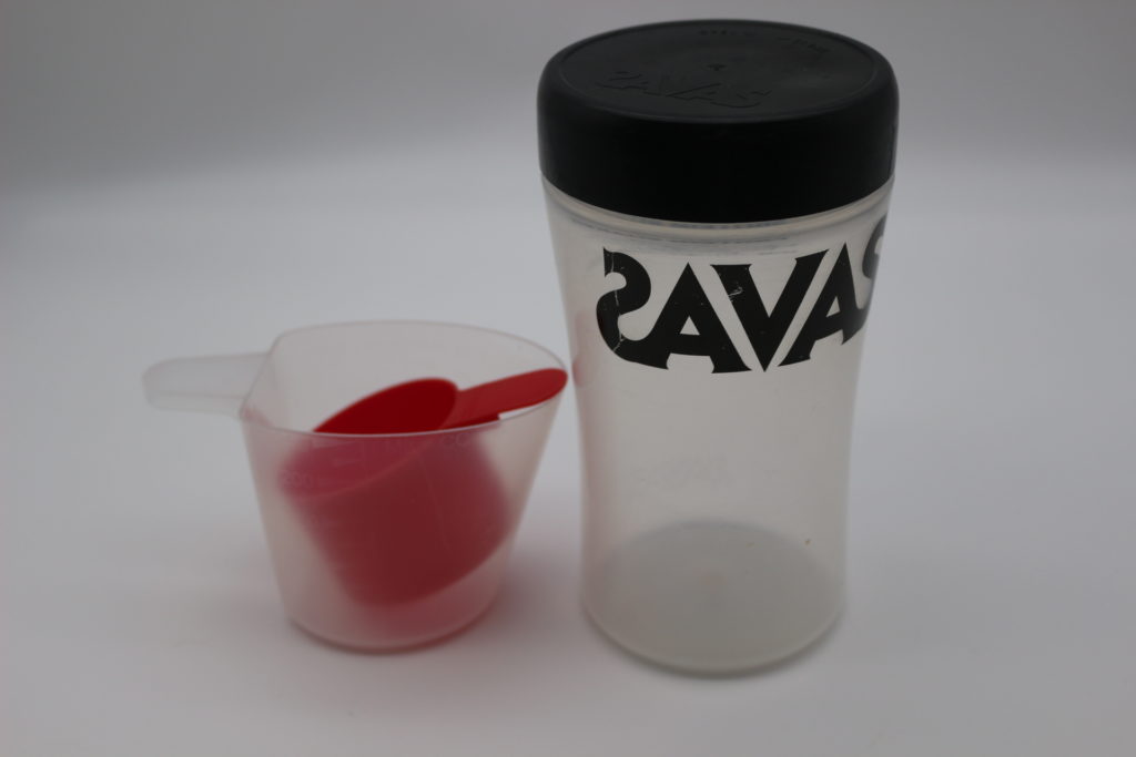 愛用者が多いSAVASのプロテインシェイカーでは1/2量しか作れませんが、僕は毎回1/2しか飲まないのでコレで不便は感じていません。