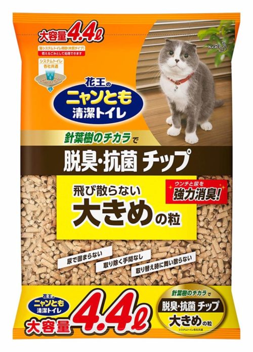 - チップや猫砂の粒が大きいので肉球に挟まったりしずらく飛び散りにくい